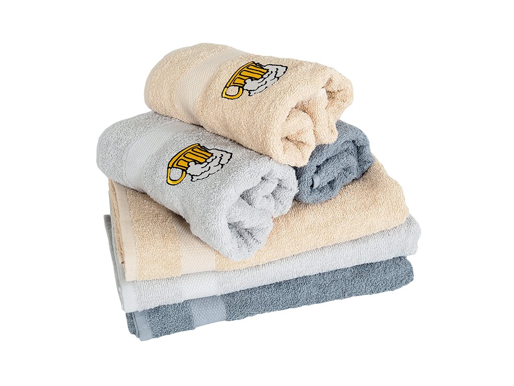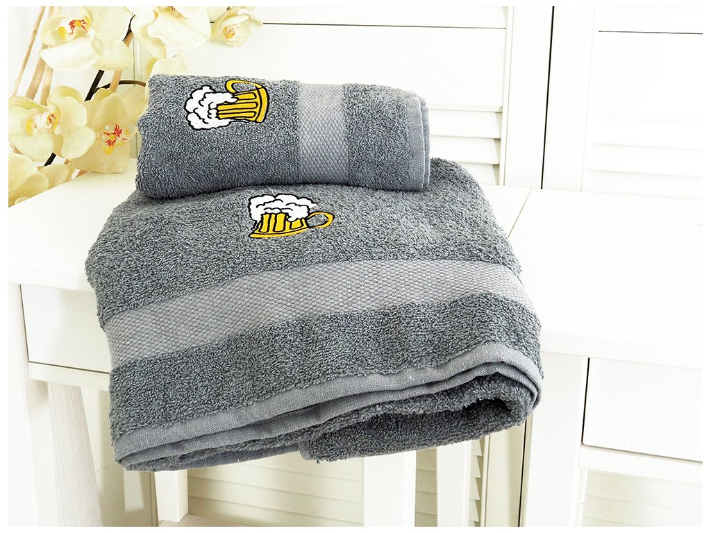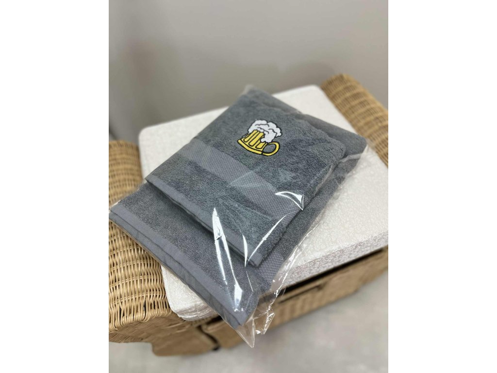 Dárkový set ručník a osuška 50x90+70x140 froté s výšivkou piva - antracitová
