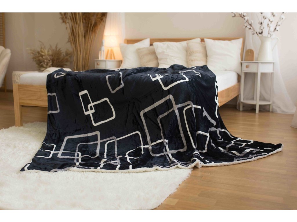 Deka s beránkem mikroplyš 150x200 - Čtverce černobílé