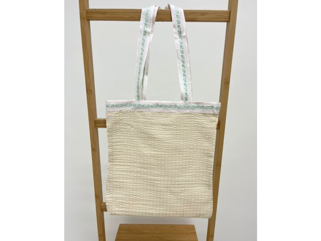Látková taška - 31x33cm - vzor Béžová s lemem růžiček