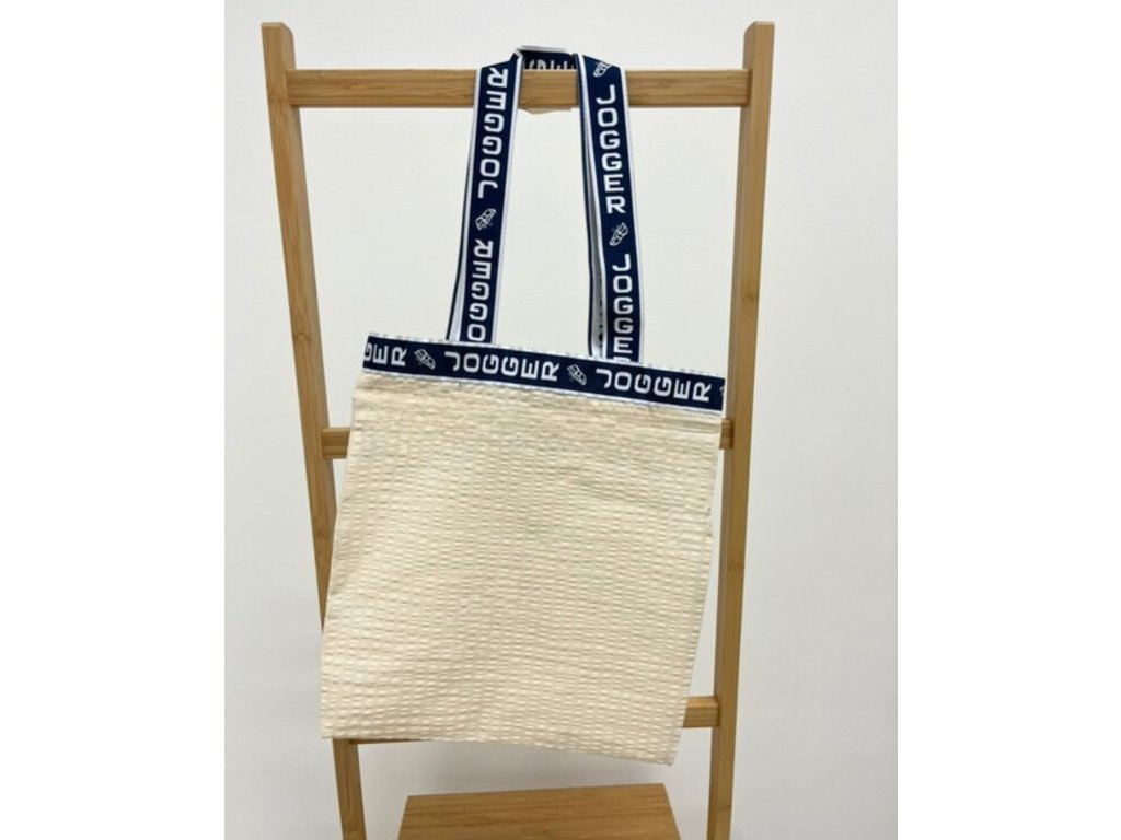 Látková taška - 31x33cm - vzor Béžová s modrým lemem