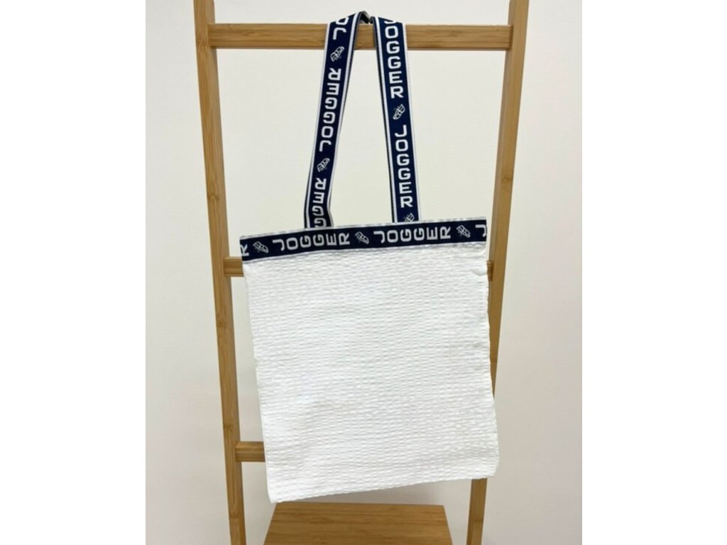 Látková taška - 31x33cm - vzor Bílá s modrým lemem