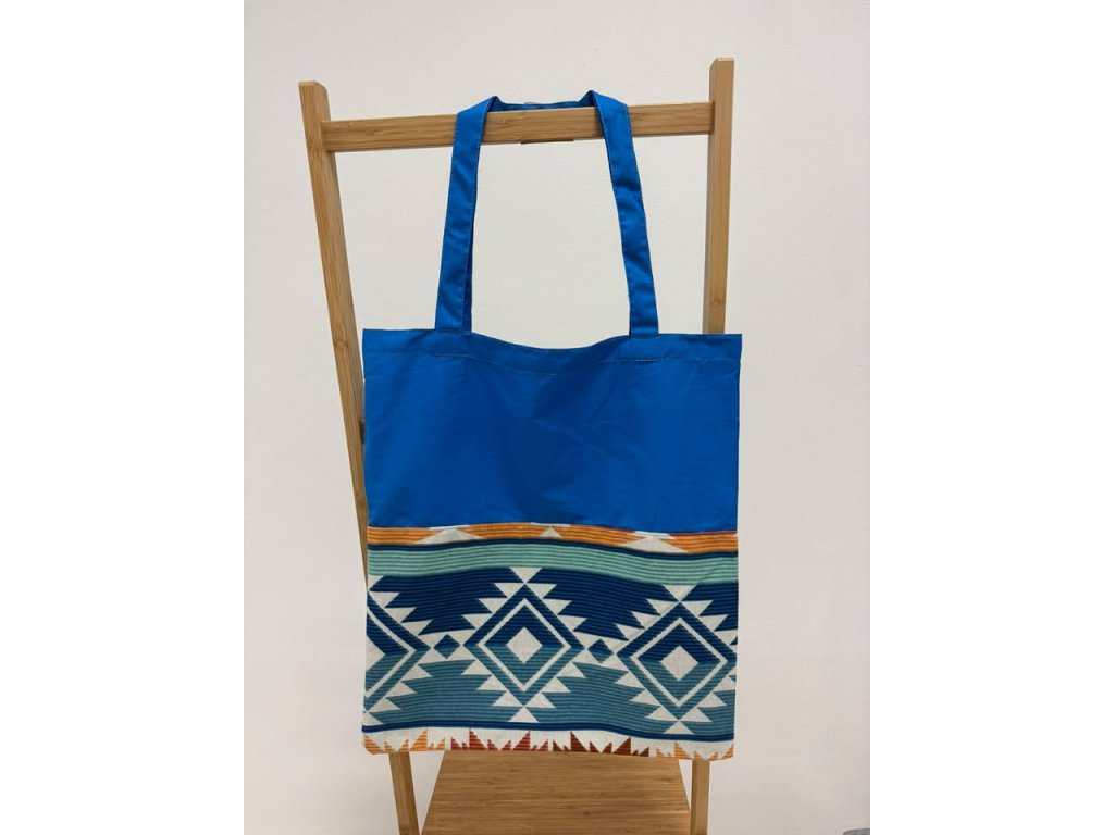 Látková taška - 37x40 cm - vzor Aztec spirit - modrá