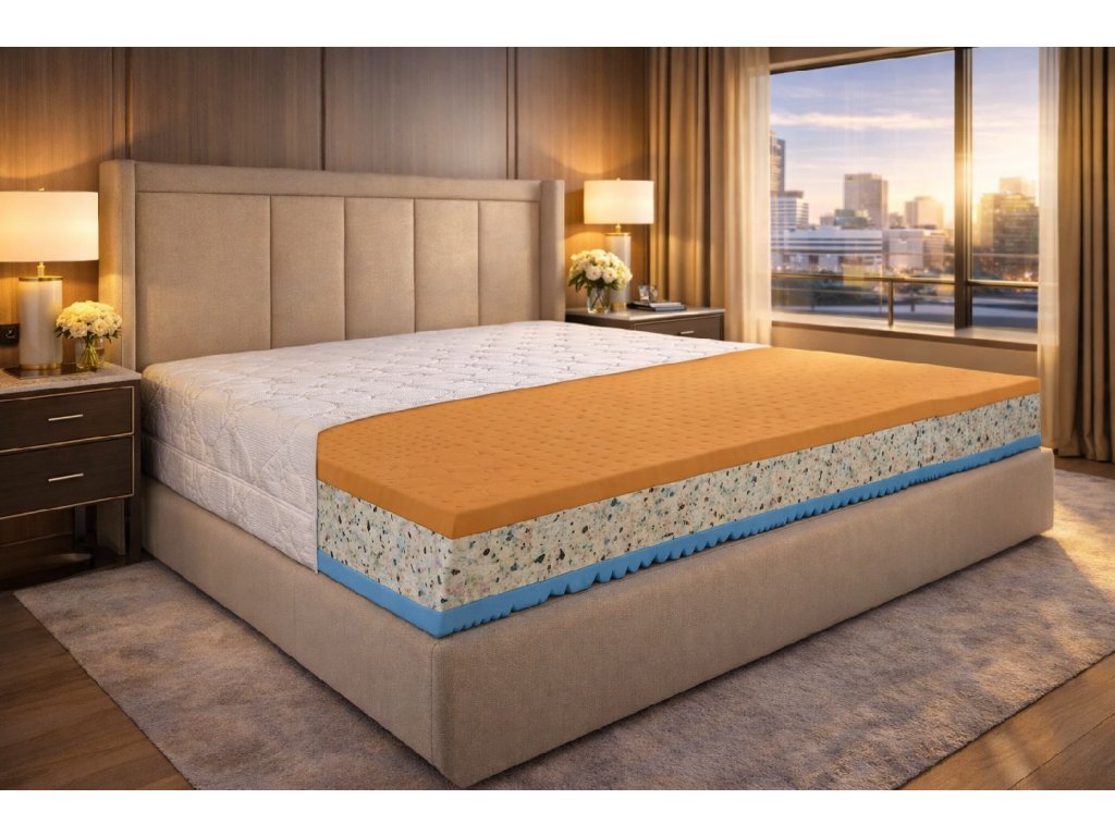 N obou stranách masážní 9 zónový nop s rozdílnými tuhostmi HARD/SOFT, který pomáhá s uvolněním svalstva během spánku. Vrchní vrstvy jsou vyrobeny s kvalitní PUR pěny o vyšší objemové tuhosti.- minimálně 30 kg/m3